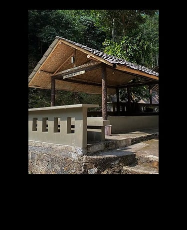Saung ini dirancang sebagai ruang interaksi sosial untuk murid-murid Raksa Jasad, menguatkan aspek Wibawa (Kharisma) dan persaudaraan melalui makan, mengobrol, dan bersantai.